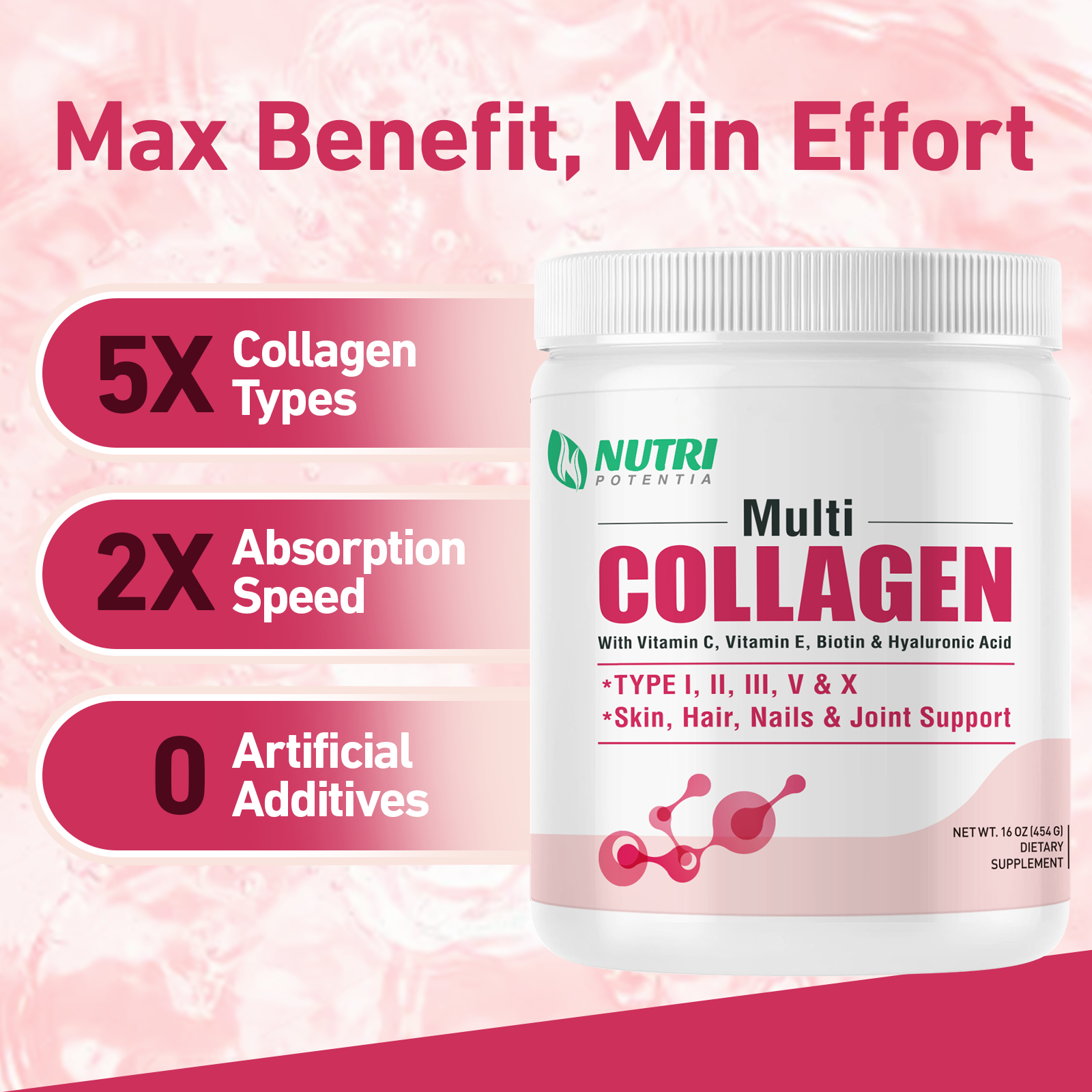 - HEALTHY SKIN, HAIR & NAIL SUPPORT: Multi-collagen peptide powder, enriched with biotin and essential vitamins, helps reducing the appearance of fine lines and wrinkles, strong nails and improve overall joint health.